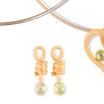 In Silber goldplattiert: Anhänger Pendel 220 Euro, Ohrstecker Pendel 375 Euro, Anhänger Gebundenes Herz 270 Euro. In Gelbgold 585 und Gelbgold 750 auf Anfrage.