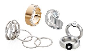 schmuckwerk war beim Inhorgenta Award als einzige Marke mit zwei Stücken nominiert: dem „Cliff“-Ring und dem Ring „Glasklar“ mit schwebendem Brillanten! Die beiden Stücke gehören zu den 10 Kollektions-Highlights, die wir Ihnen empfehlen möchten. Neu 2017: Der Kettenring hat passenden Hals- und Ohrschmuck erhalten, die Drillinge überzeugen in einer neuen, coolen Variante und Verliebte dürfen sich auf eine schmalere und abgerundete Variante des Cliff-Rings freuen. Der dazu passende Antragsring ist in der beliebten Krönchenform gestaltet. Die Kollektion Glasklar mit dem schwebenden Brillanten gibt es im Edellook in Roségold und die Ringe Umarmung haben zierlichere Geschwister erhalten, in denen sich Kundendiamanten einfassen lassen.