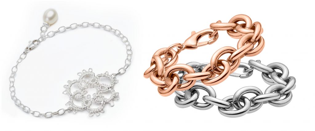 Schon was von „Arm-Party“ gehört? Der Trend läuft schon ein paar Jahre und meint das Tragen von möglichst vielen Armbändern am Handgelenk, auch eine oder mehrere Uhren passen dazu. Klar, das gab’s auch schon den 90ern (Stichwort Buddhabänder, Wolfgang Petry, aber die Armparty unserer Zeit feiert man nicht nur mit geflochtenen Bändern und Klimperkram, sondern kombiniert auch hochwertigen Edelstahl-, Silber und Goldschmuck dazu. Der Tipp unseres Trend-Scouts: Mit Flecht- oder Lederbändern die Farbe des jeweiligen Outfits aufnehmen, das macht den Look gleich stimmig und durch die Auswahl den Stil bestimmen: Schwarzes Leder mit Nieten unterstreicht den Rocker-Stil, Bänder mit Glitzer (Diamanten, Strass, Zirkonia) den Glamour, zarte Bänder das feminine Element und Gliederkette, das klassische Statement. Unser Tipp: Filigraner Armschmuck von Brigitte Adolph verzaubert jede Arm-Party, wie auch die starken Gliederarmbänder von Heideman aus polierten Edelstahl