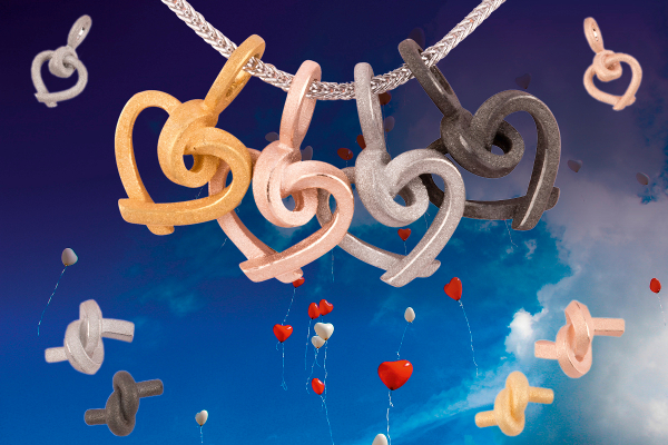 Minis von Knotenschmuck: Anhänger MiniHerzen in Silber und Silber schwarz rhodiniert, 110 Euro, in Silber Gelb- oder Roségold plattiert 115 Euro, in Gold 585 ca. 280 Euro, in Gold 750 ca. 360 Euro. Anhänger MiniKnoten in Silber und Silber schwarz rhodiniert, 130 Euro, in Silber Gelb- oder Roségold plattiert 140 Euro, in Gold 585 ca. 530 Euro, in Gold 750 ca. 720 Euro.