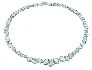 Typisch Lapponia: die raue Struktur der Oberfläche, die das Licht in sich aufnimmt und den Schmuck wie von innen heraus leuchten lässt. Das Design stammt von der niederländischen Designerin Liesbeth Busman, deren wichtigste Leitlinie die Vollkommenheit in der Unvollkommenheit ist.
