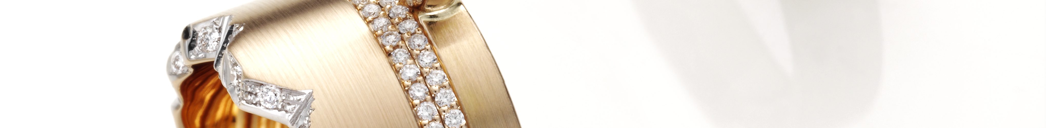 - Die Trauringe „Cliff“. Das ausdrucksstarke Schmuckstück greift die zerklüftete Form von Felsen oder Klippen auf, in der Kante funkeln kleine Brillanten. Im Herrenring befindet sich das charakteristische Cliff in der Innenseite und ist nur bei der Draufsicht erkennbar. Das Besondere: Zuerst wird der Damenring gefertigt, der Herrenring danach darauf abgestimmt. Ein einzigartiges Paar, füreinander geschaffen.