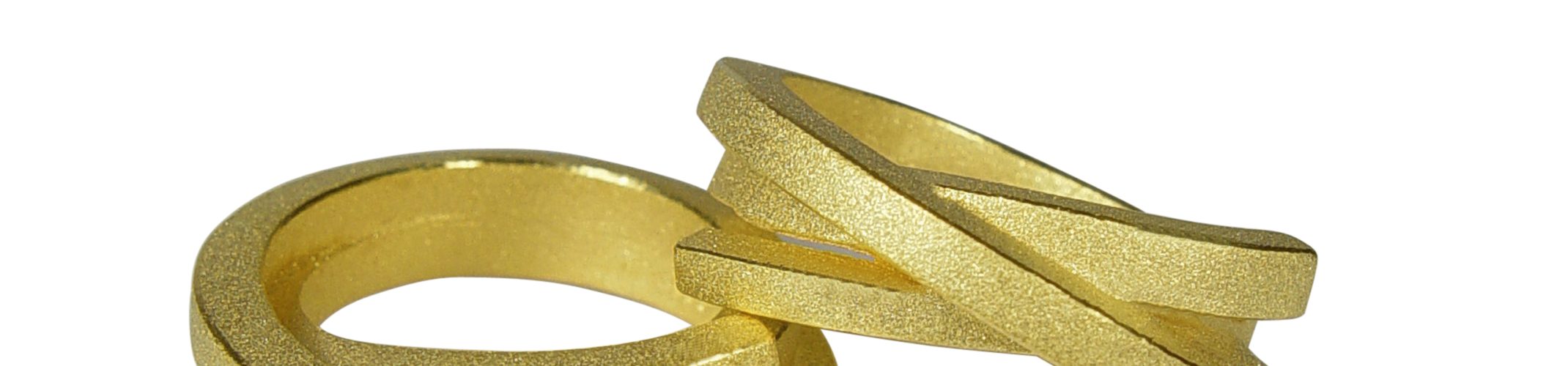 Verbindungsringe rund oder kantig, in Silber hell oder schwarz rhodiniert, gelb- oder roségoldplattiert je 265 Euro, in Gelb- Weiß- oder Roségold 585 und 750 auf Anfrage.