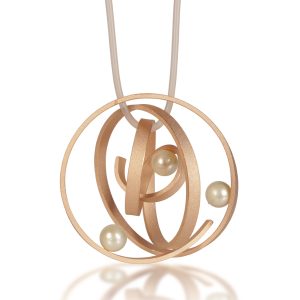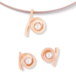 Wenn es das Design erlaubt und die Harmonie der Linien nicht stört, setzt Martina Tornow Süßwasserperlen in ihre Stücke ein. In den PerlSpiralen bilden sie das hypnotische Zentrum, in den PerlPendeln den edlen Abschluss, in den PerlHerzen scheinen sie zu schweben und auf den Gold- und Silberbahnen entlang zu rollen und in den KugelKnoten vollführen sie einen eleganten Balanceakt.