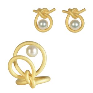 Knotenschmuck vereint diese kraftvollen Symbole zu ausdrucksstarkem Schmuck. Fließende Linien – einer Handschrift gleich – formen sich zu dreidimensionalen Schmuckobjekten und bilden mal mehr, mal weniger offensichtlich, einen Knoten, der den Hauptgedanken inniger Verbundenheit Gestalt verleiht.