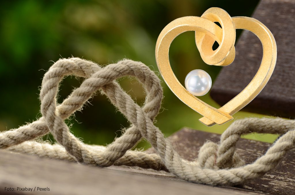 Symbolträchtiger kann ein Schmuck kaum sein: Knoten, die für Verbundenheit stehen, Herzen für die Liebe – und Perlen, die in China Reichtum, Weisheit und Würde bedeuten und in Japan Glück verheißen.