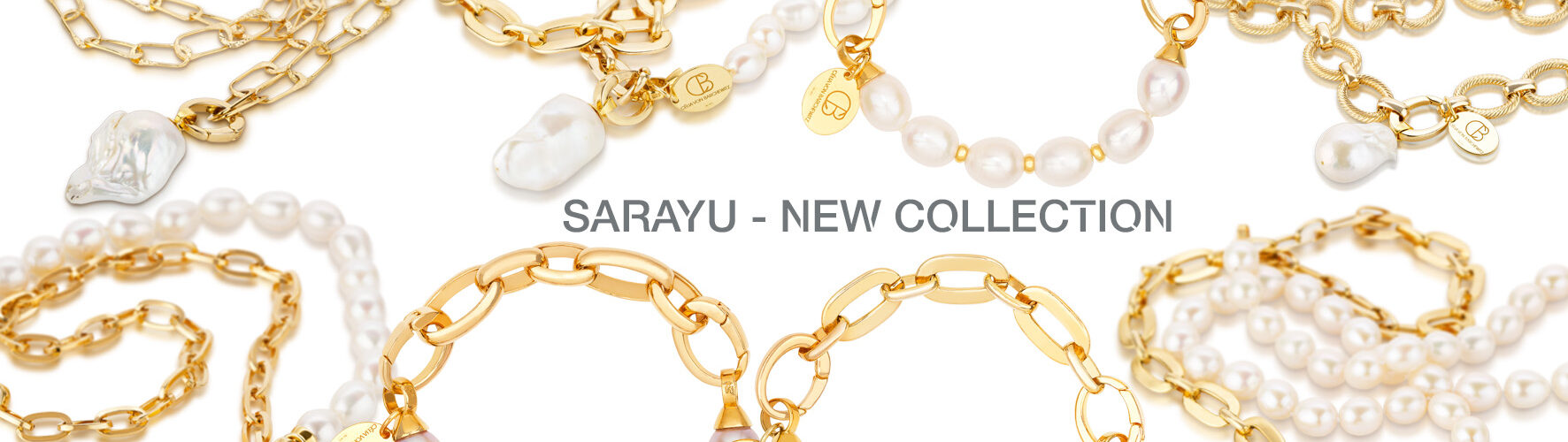 Die neue Kollektion Sarayu spielt auf die Leichtigkeit und das Fließen des Windes an und verbindet Anmut und Eleganz mit einer selbstbewussten Rockattitude. Große, luftige Gliederketten vereinen sich mit sanft schimmernden Süßwasserzuchtperlen in natürlichen Biwa- und Barockformen. Miteinander verbunden, ergeben sich spannende und moderne Optiken.