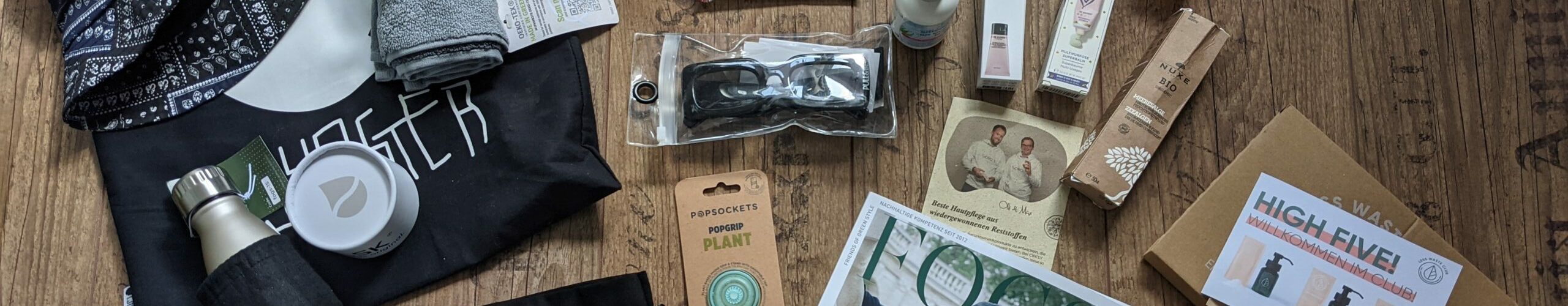 Goodie Bag zum Thema Nachhaltigkeit. Mit dabei: Perlenschmuck von Célia von Barchewitz