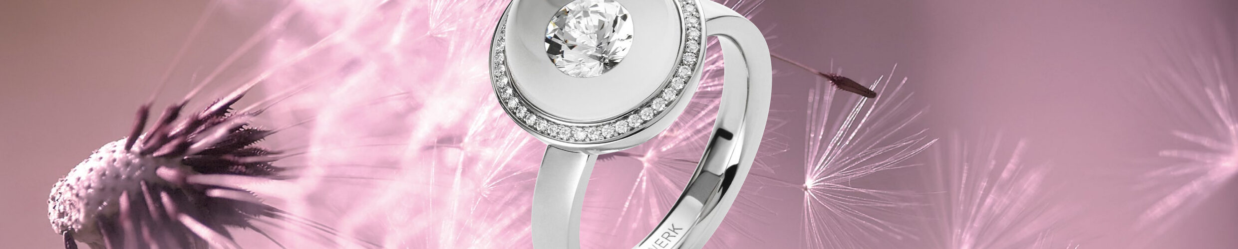 Illusion oder Wirklichkeit? Schmuckwerk bringt Brillanten zum Schweben! In einer Glaskugel eingebettet, zeigt der Edelstein all seine Facetten, ohne von einer Fassung begrenzt zu werden. Das Licht strömt ungehindert durch ihn hindurch und entfacht sein volles Leuchten.